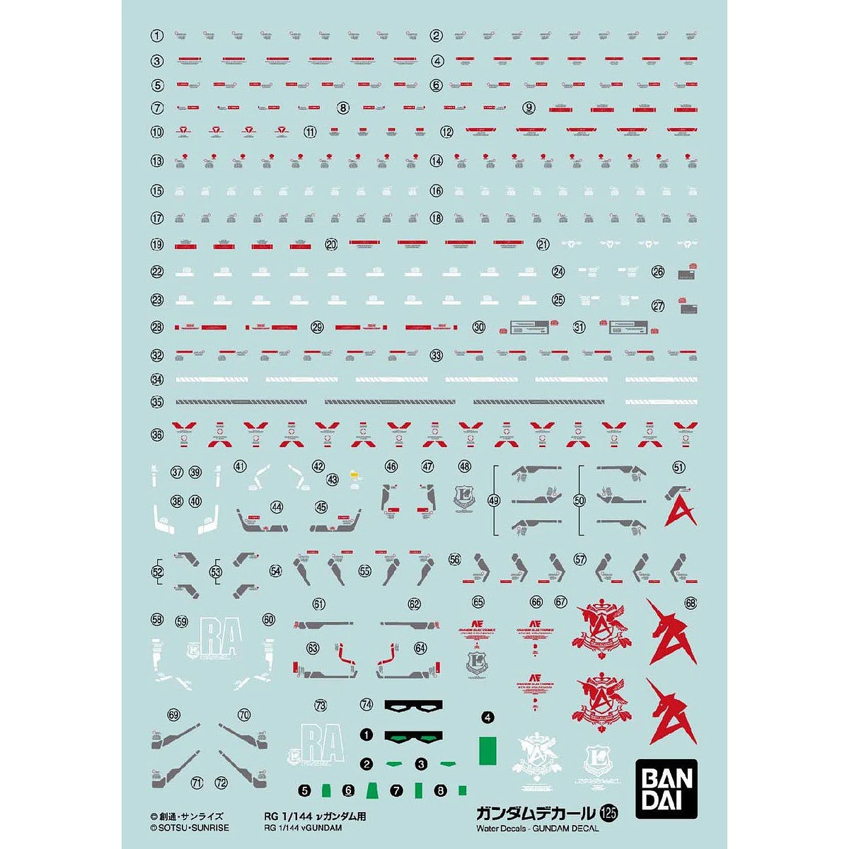 Description du produit « 1 PACK DECAL N°125 RG GUNDAM NU 1/144 »